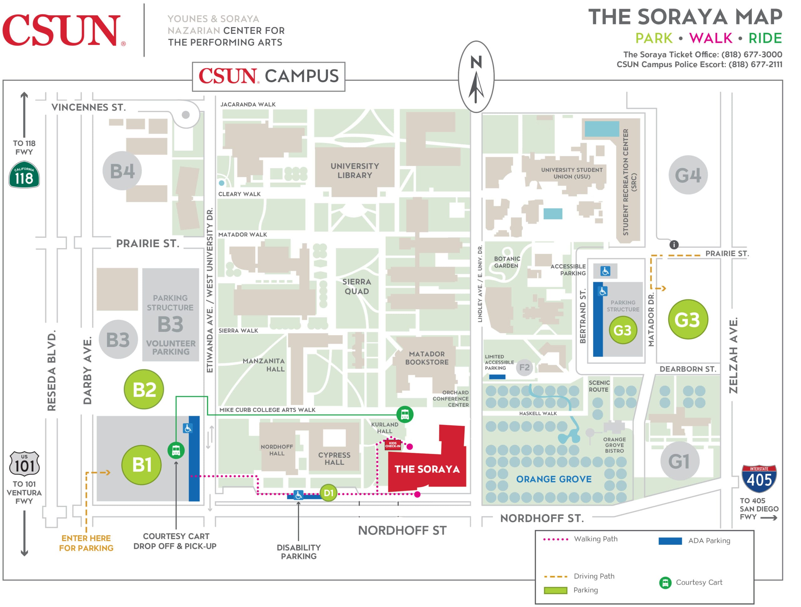 Lot B1 & B2 of the CSUN Campus will be free. Also, shuttle services are available.