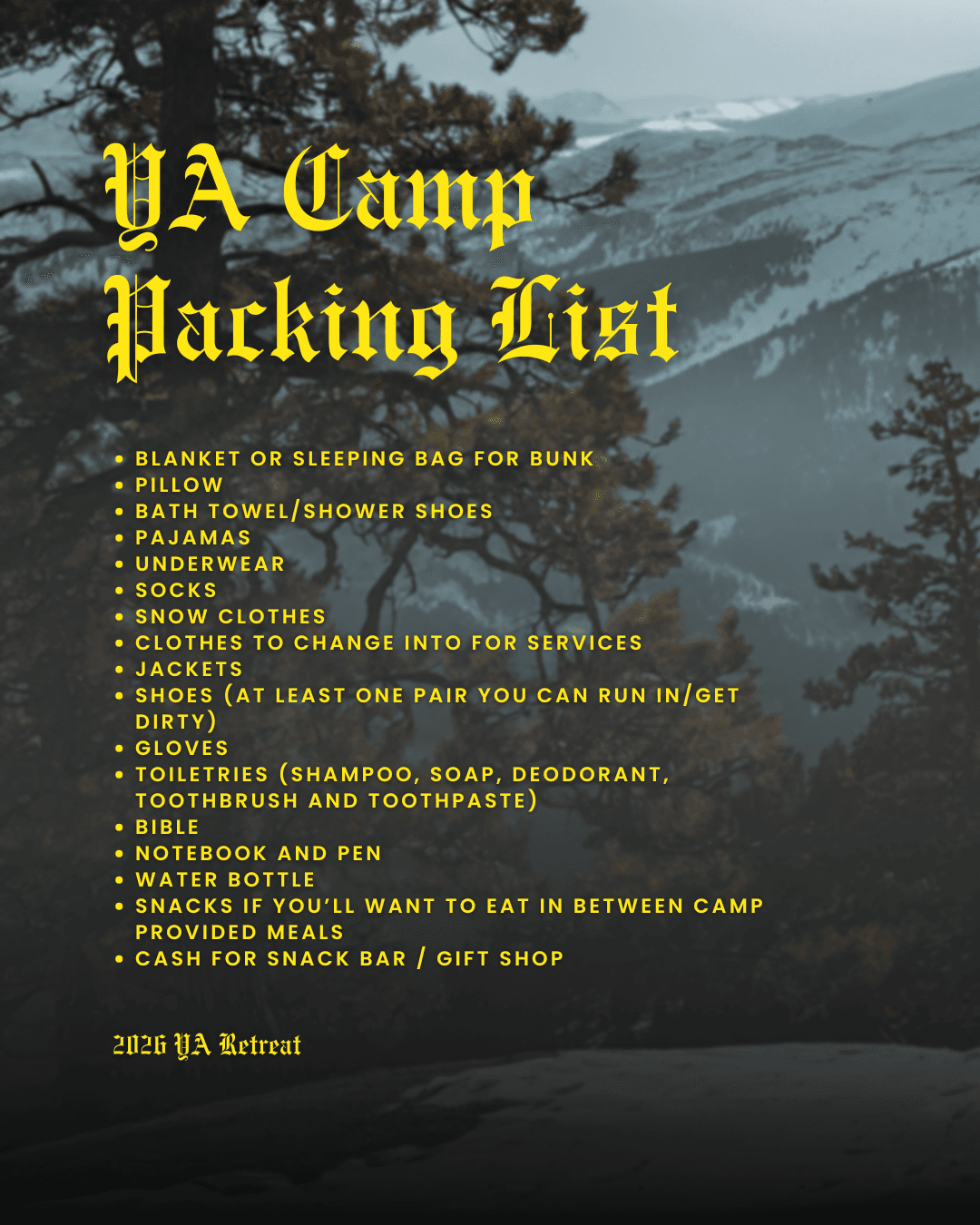 Join us March 6-8th at Camp Cedar Crest with over 500 young adults who are ready to lay aside distractions to meet with the person of Jesus Christ.